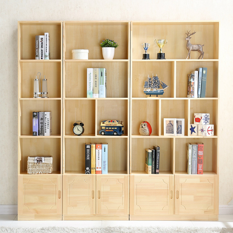 实木书柜书架落地带门柜子松木儿童组合简易置物架宜家简约现代